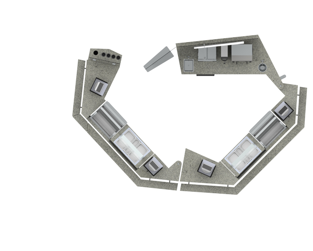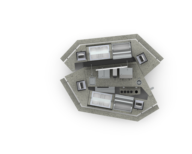 Establishing the ideal location can often lead to extremely high levels of trade so it is important to have back-up nearby. The v9-rw-mw format will fold to create a work-space for additional stock and even provide a pass-over location for your more complex food offers. The food prep area will rest against a structural wall or have an additional element added for centre floor locations.